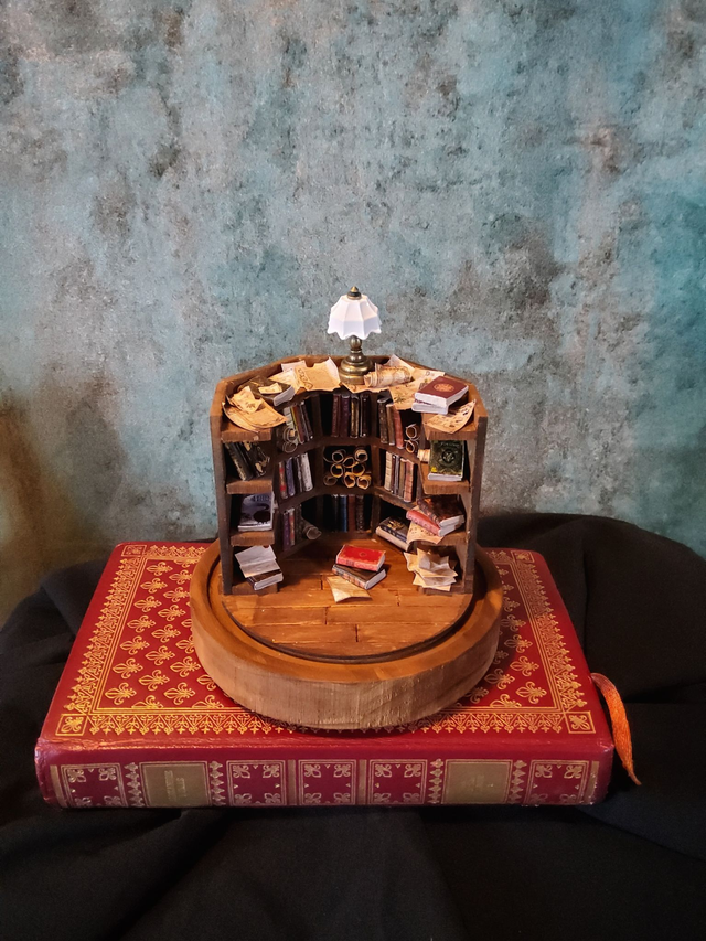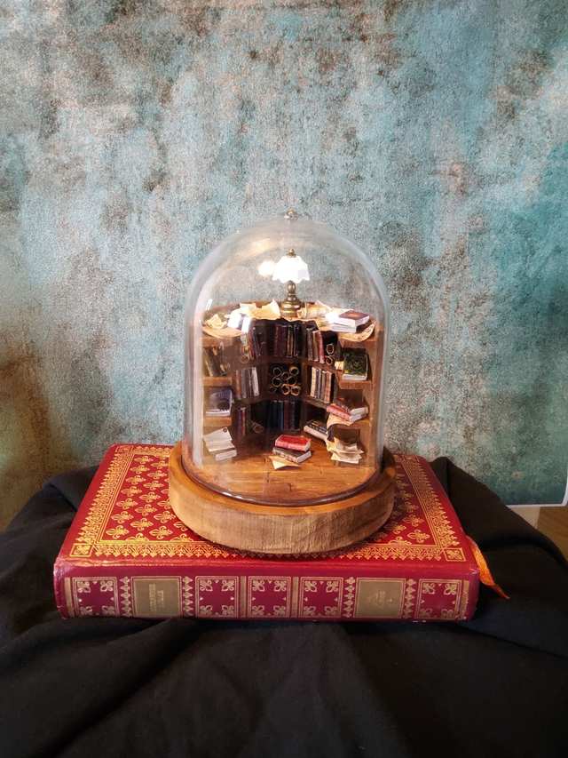 Sous cette cloche se cache une bibliothèque miniature empreinte de mystère.